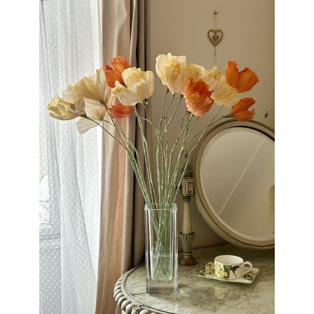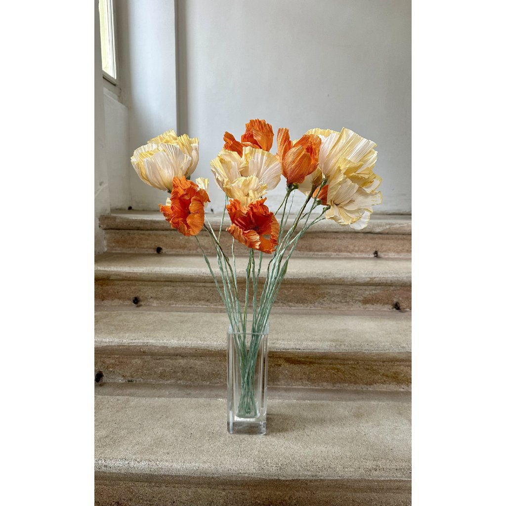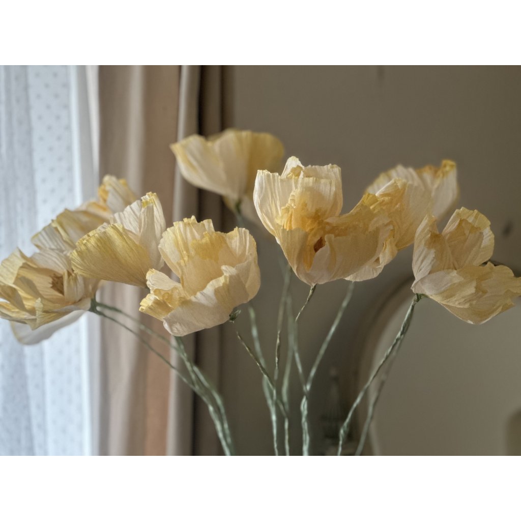 Islandský vlčí mák, béžový, žluté dobarvení Papírová květina, islandský mák, barveným vyrobeno v ČR
