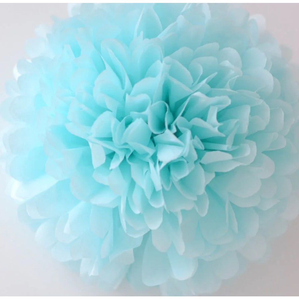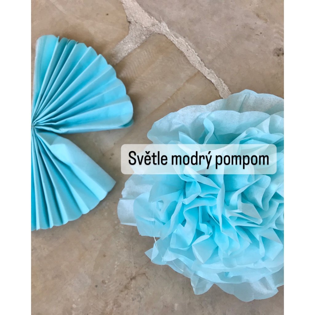Závěsný Pompom ve světle modré barvě, závěsná dekorace na party, oslavy, svatby, do výlohy, marketingové eventy
